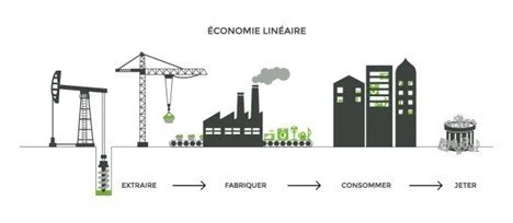 L’économie circulaire, comme son nom le sous-entend, c’est une économie en boucle et non une chaine de production linéaire comme on le connait actuellement (voir images ci-dessous).
